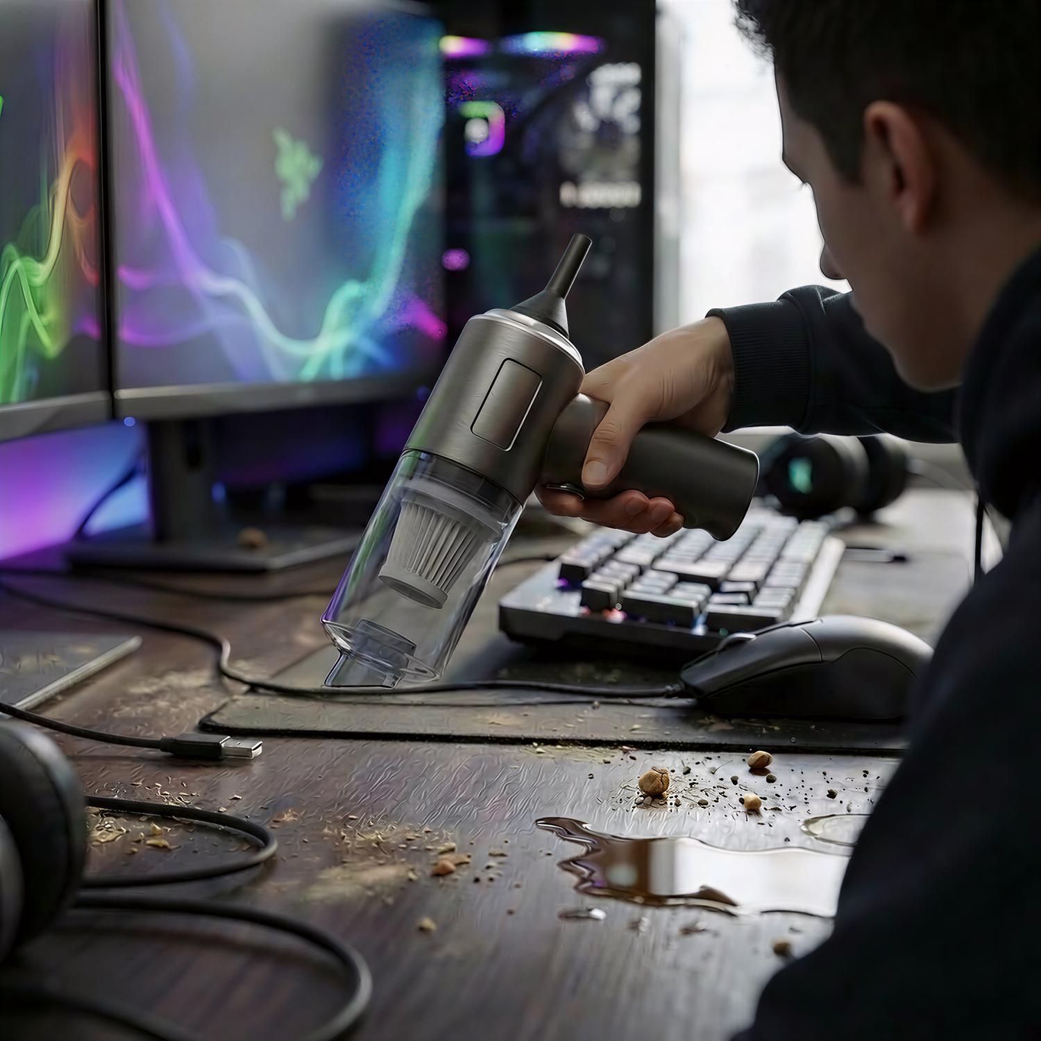 Il aspire ou souffle : poussière, miettes, cheveux, poils, liquides... Sans fil, il s’utilise partout : maison, bureau, gaming, voiture...